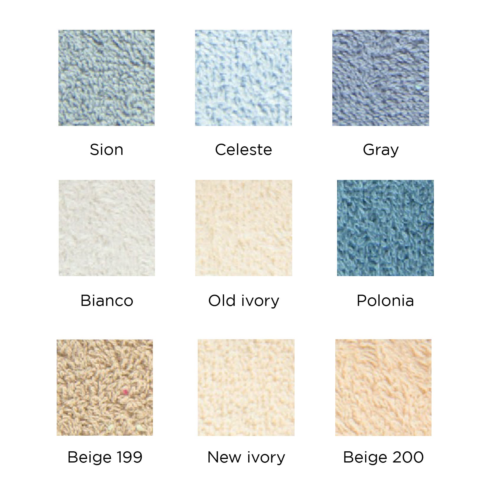L'asciugamano grande misura cm 60 × 110, l'asciugamano piccolo misura cm 40 × 60.