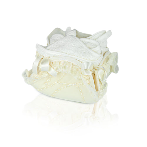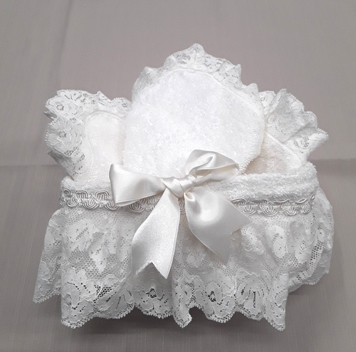 CESTINO PORTA LAVETTES con PIZZO e TULLE scegliere il colore della spugna
