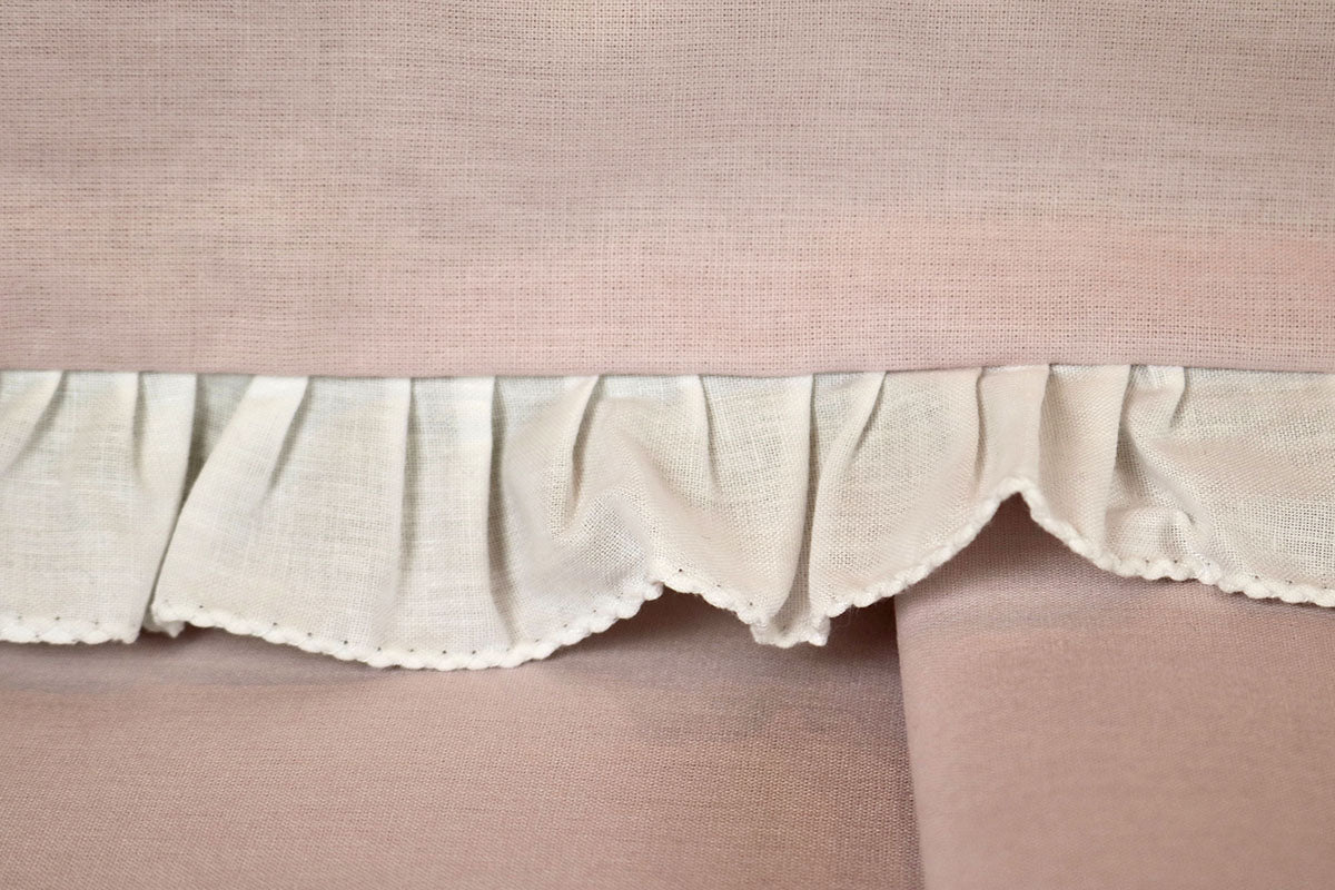 •Questo romantico lenzuolo è arricchito da una piccola galetta (ruche) panna
