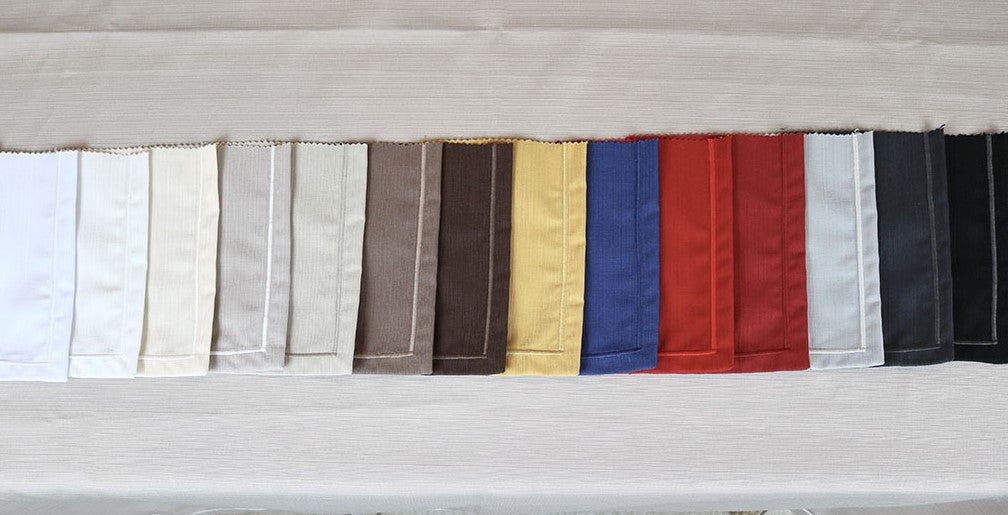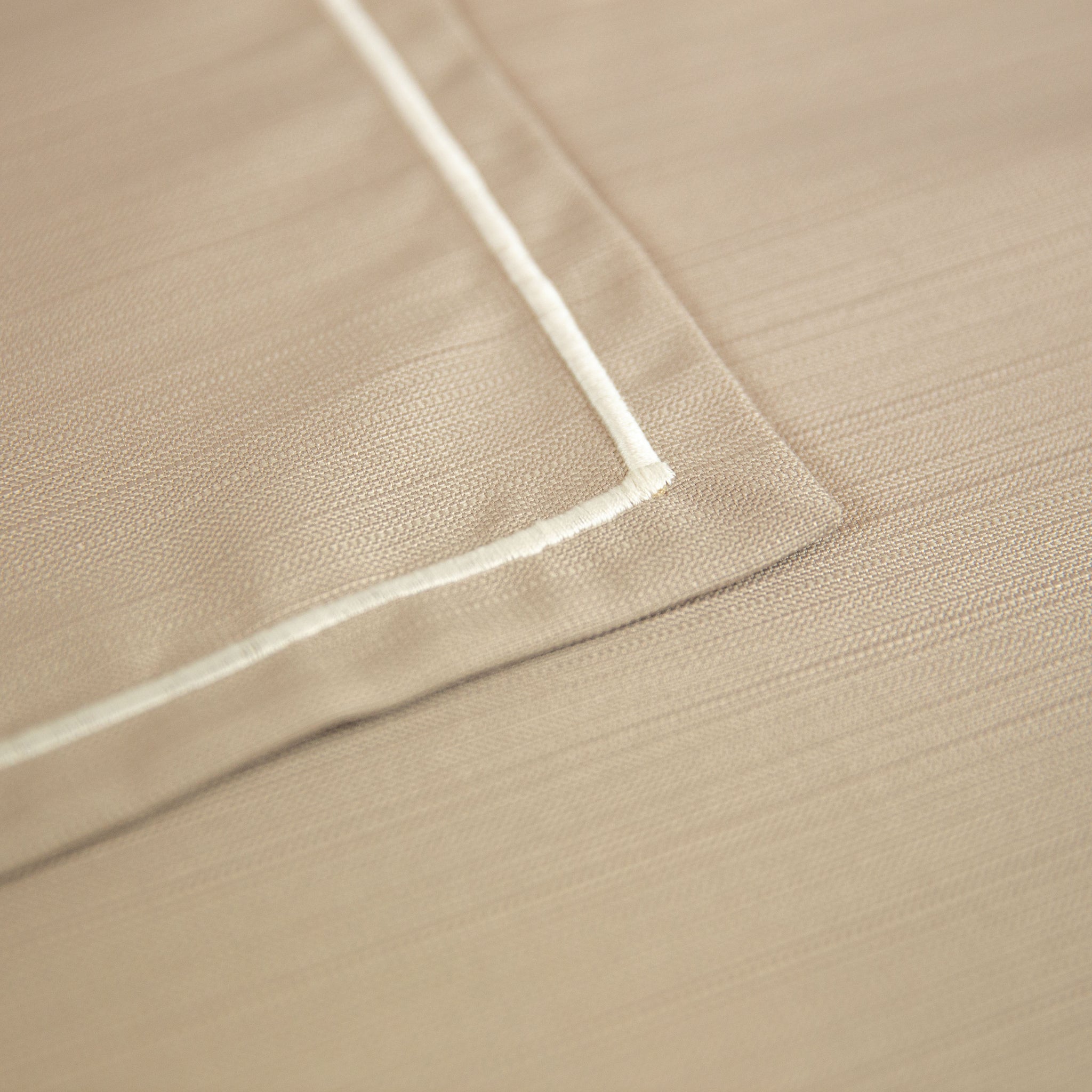Ha l'aspetto del misto lino e un bordino che orla tutta la tovaglia in colore panna o a contrasto.
