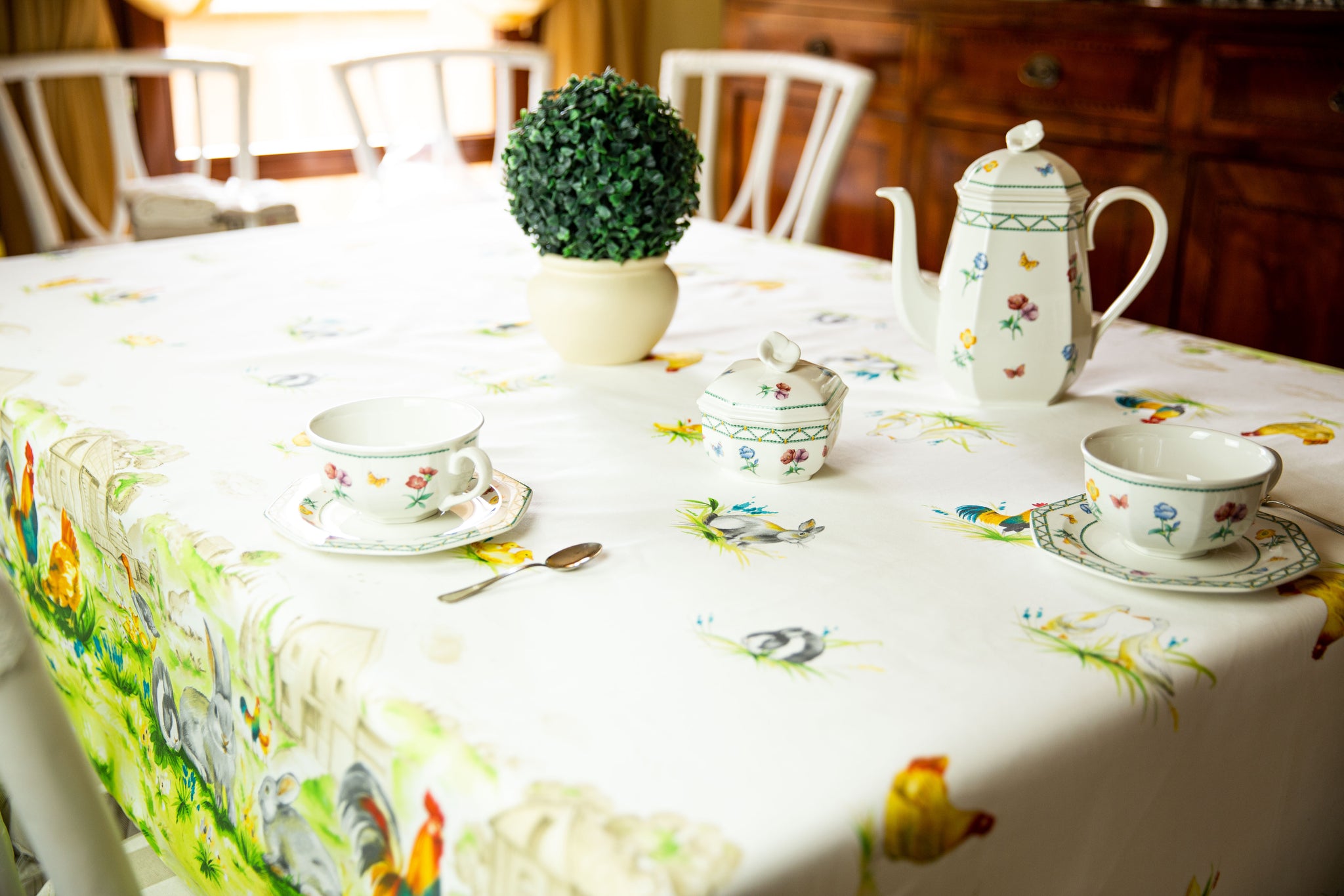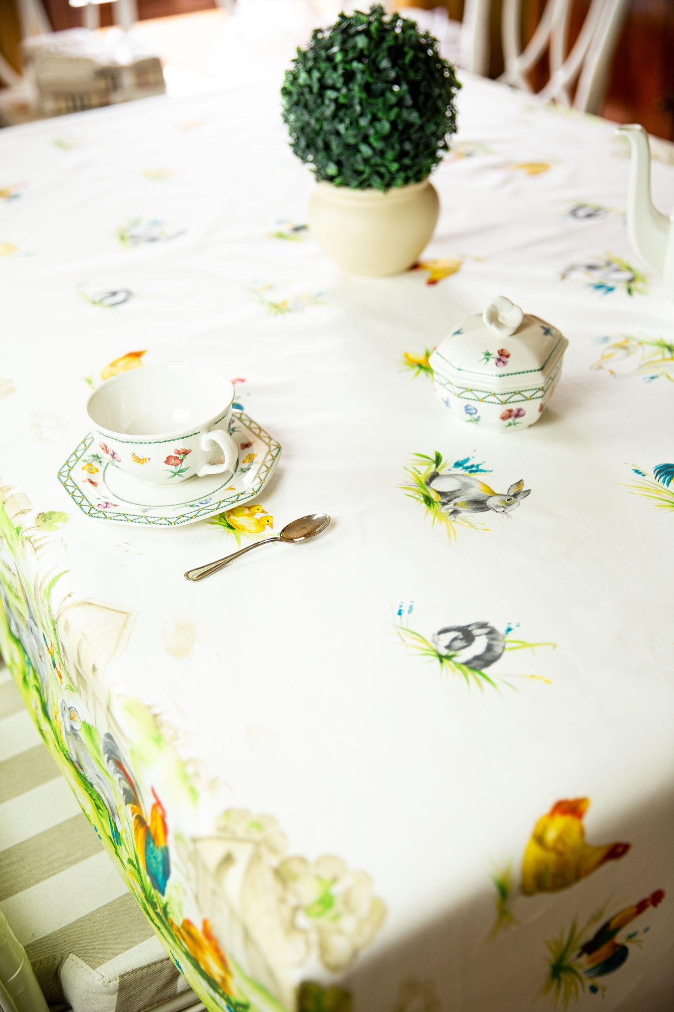 Ha una bellissima stampa con animaletti tipici della CAMPAGNA su fondo panna
