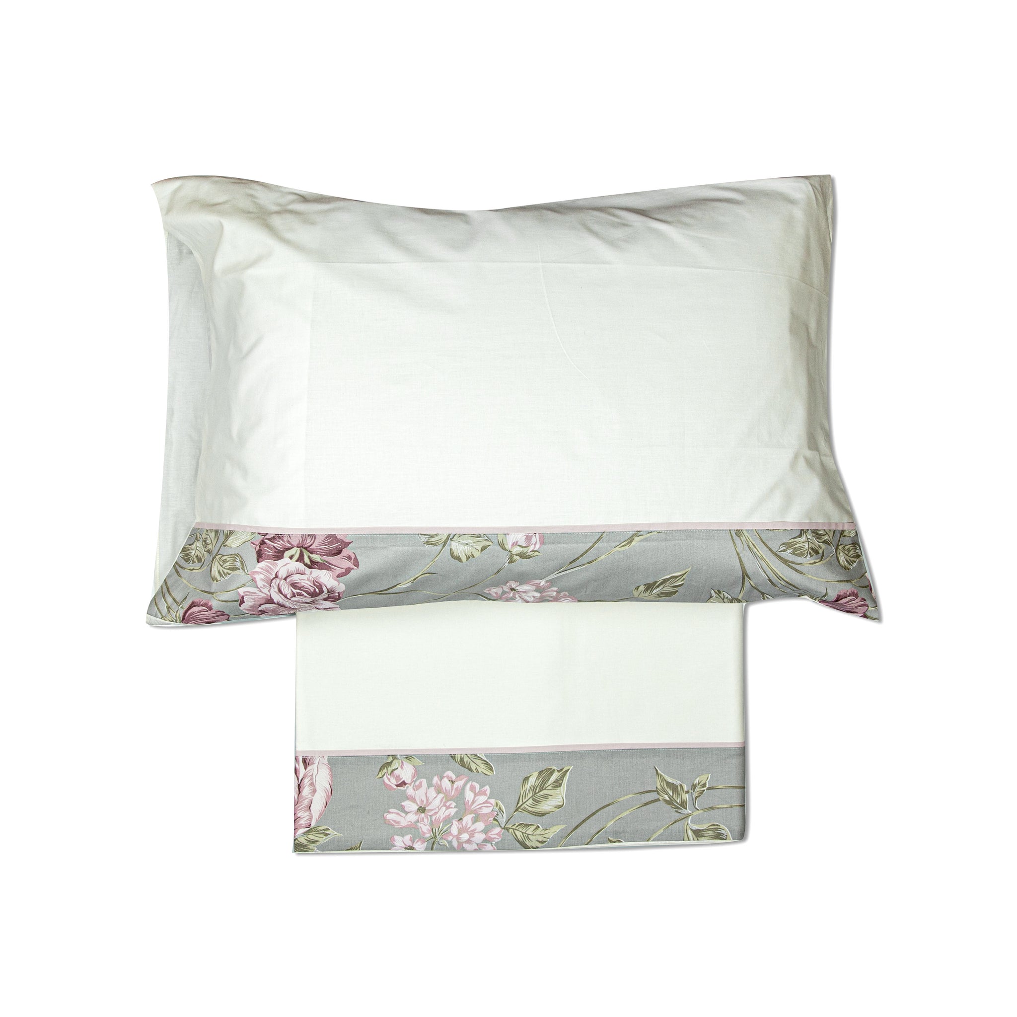 • lenzuolo per sopra in puro cotone 100% color PANNA con balza a fiori