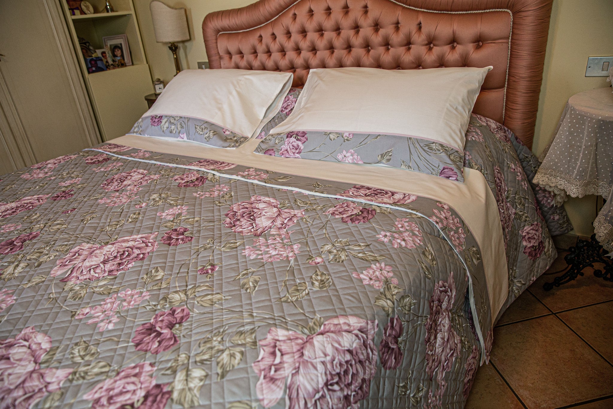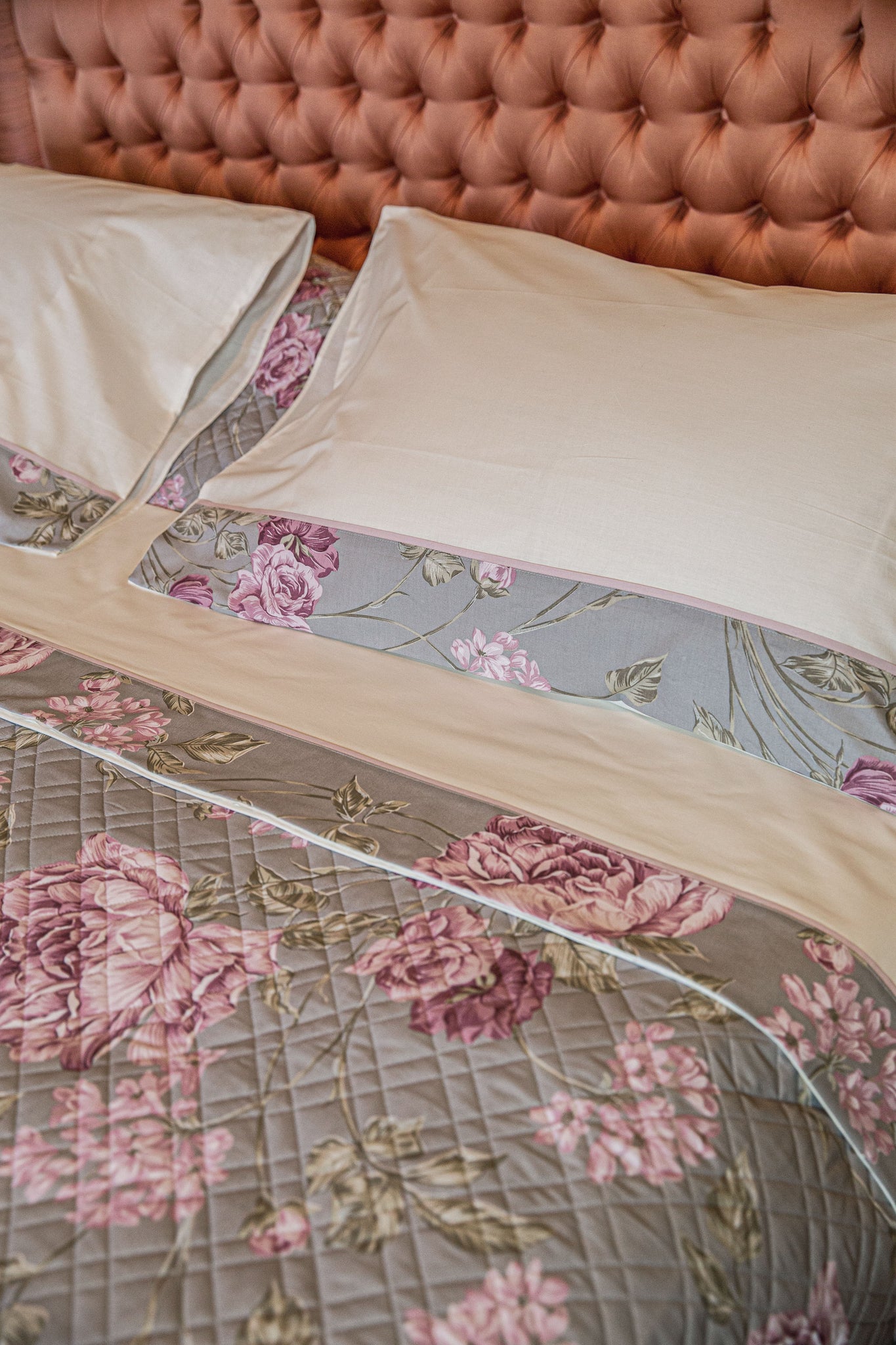 Completo Letto in puro cotone  con fondo color PANNA  e BALZA in una bellissima fantasia forata