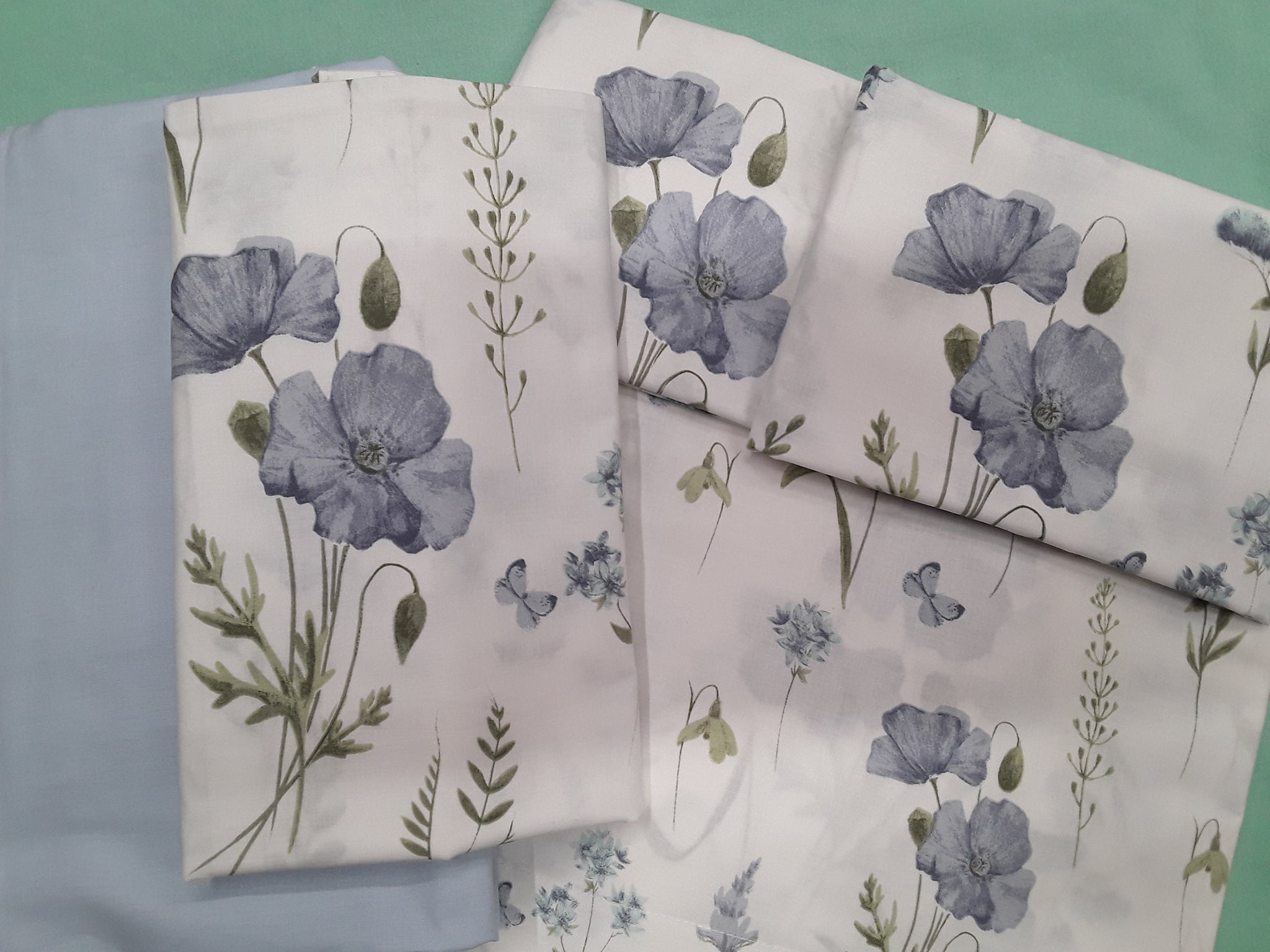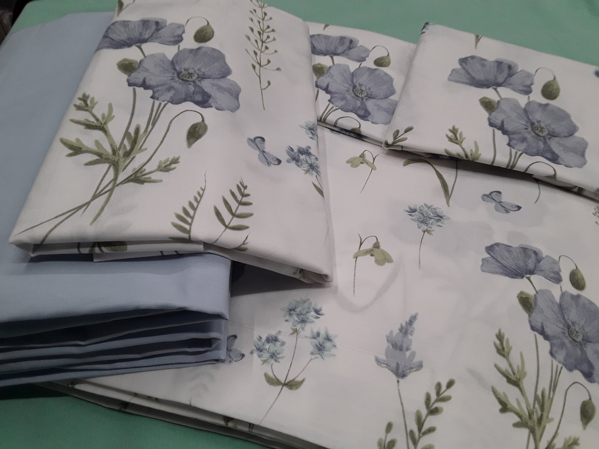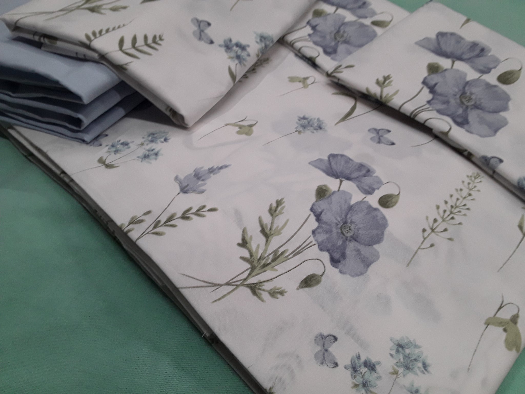 Completo Letto con allegra fantasia floreale su fondo panna realizzato esclusivamente in morbido cotone italiano: