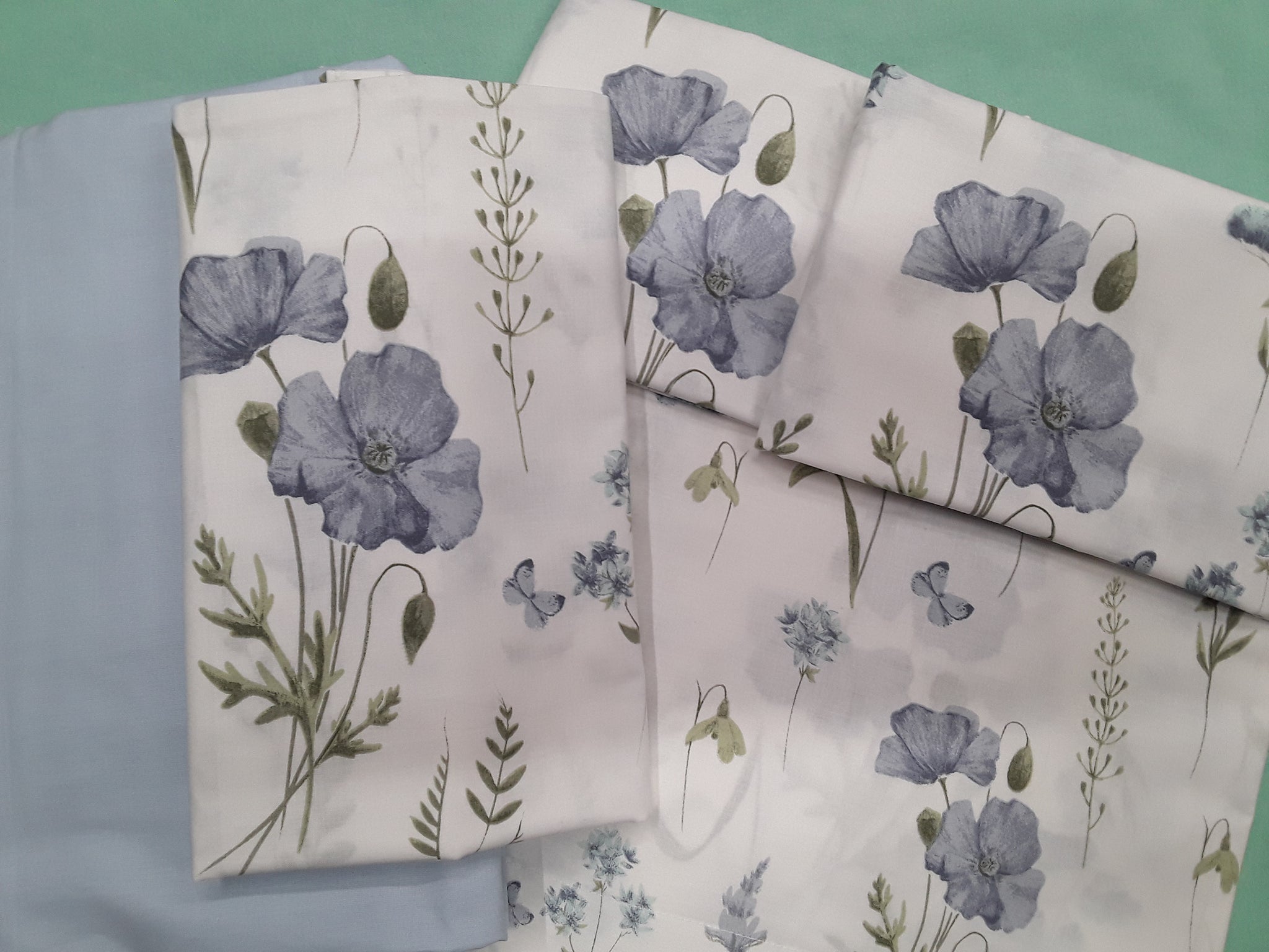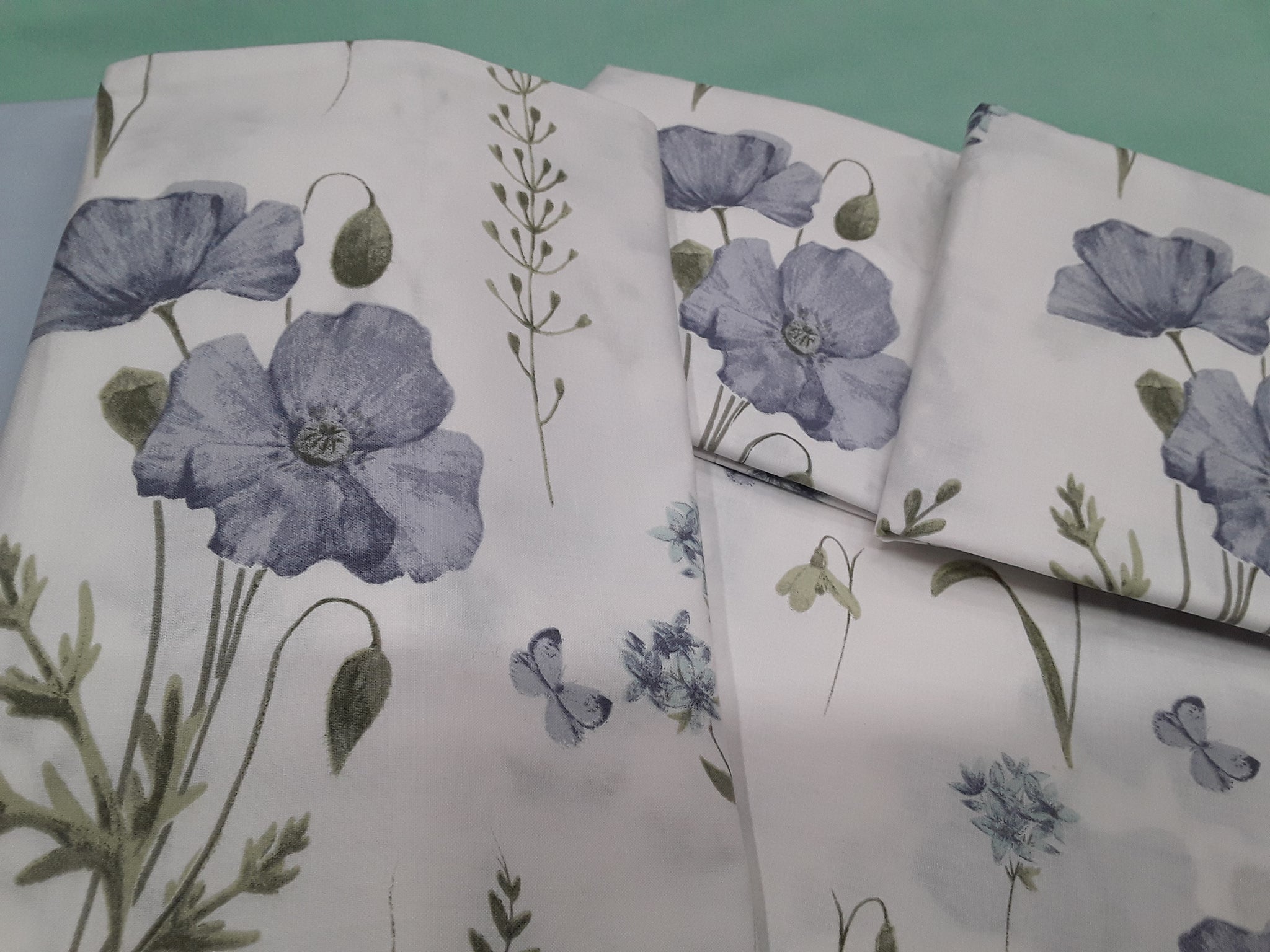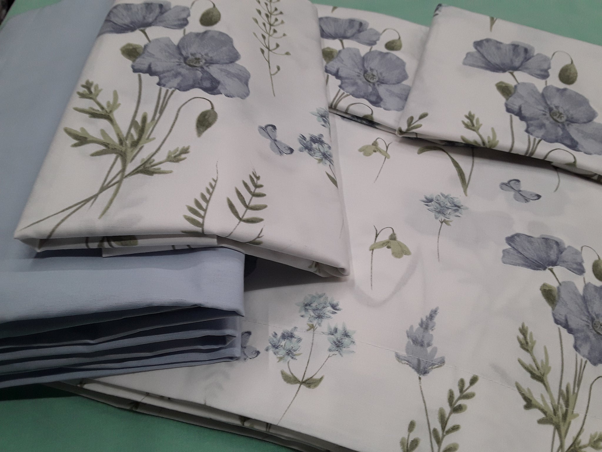 Completo Letto con allegra fantasia floreale su fondo panna realizzato esclusivamente in morbido cotone italiano: